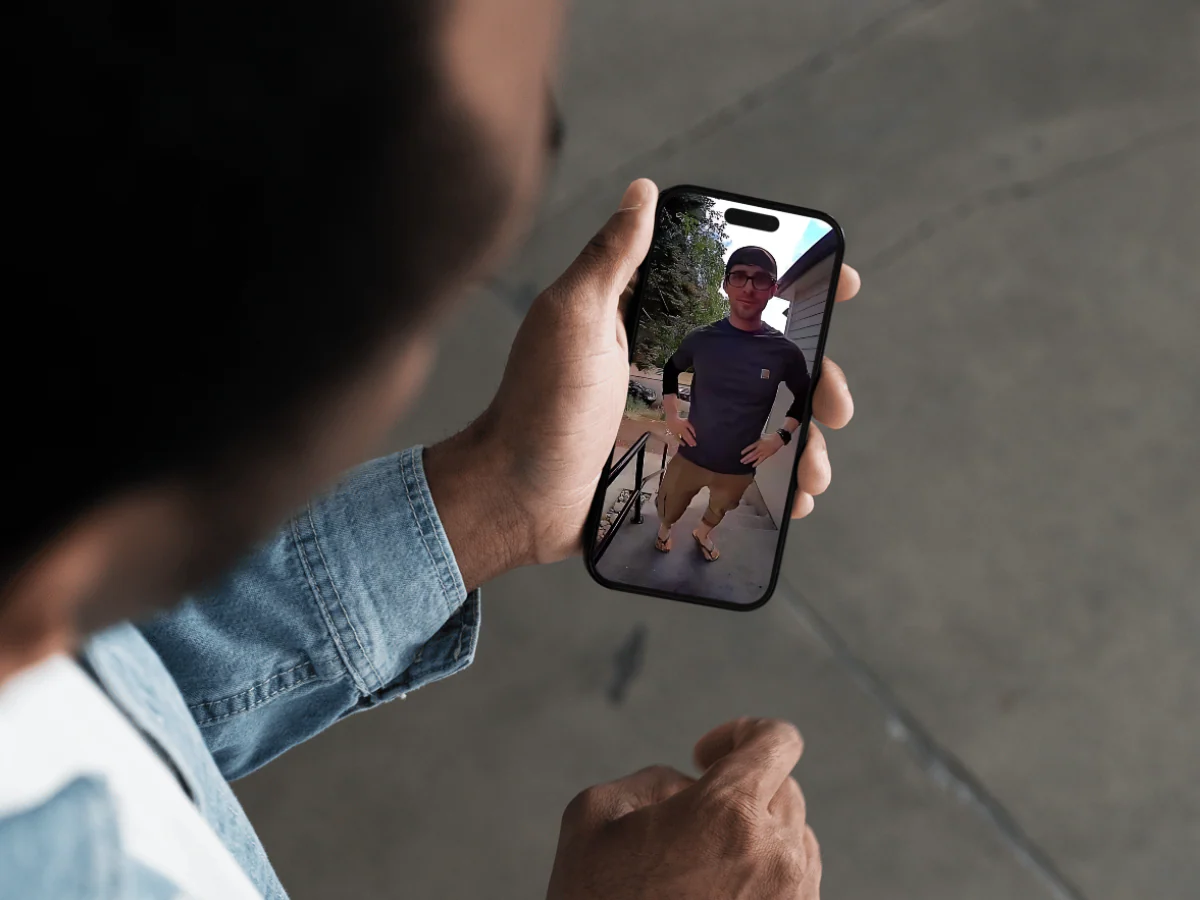Peek Dørkamera kobles til hjemmenettverket ditt og viser live-video i appen. Når noen ringer på eller registreres av bevegelsesdeteksjon, får du push-varsler på mobilen.